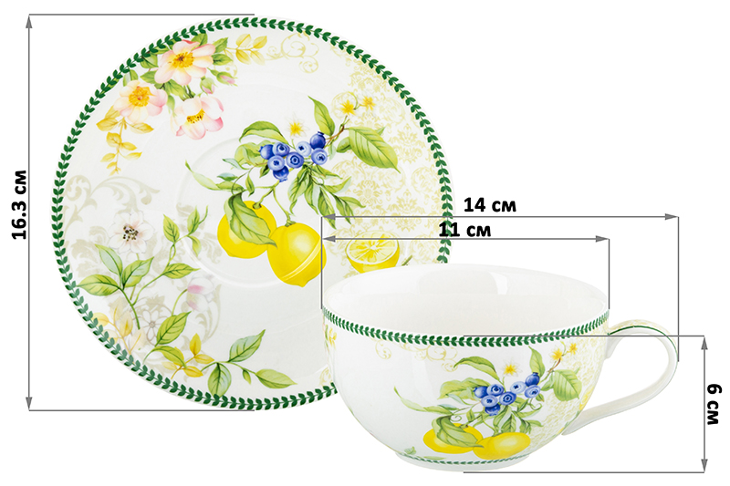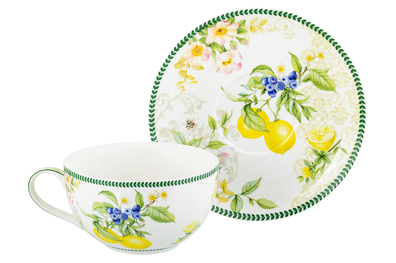 Чашка для капучино + блюдце 350 мл 14*11*6 см "Лимоны" NEW BONE CHINA