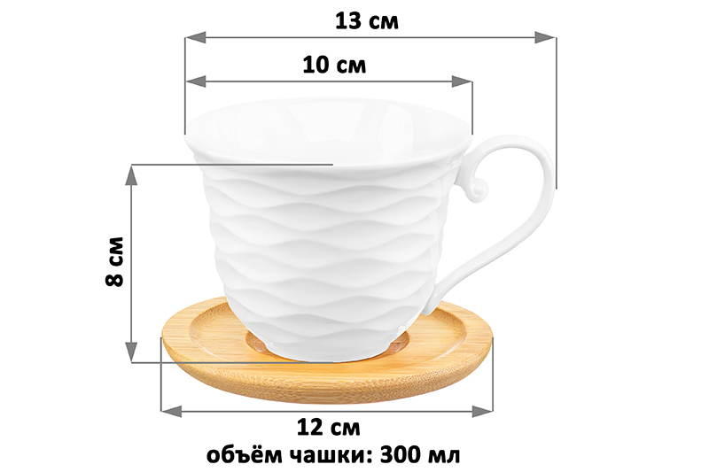 Чашка для капучино и кофе латте 300 мл "Айсберг волны" + дер. подставка