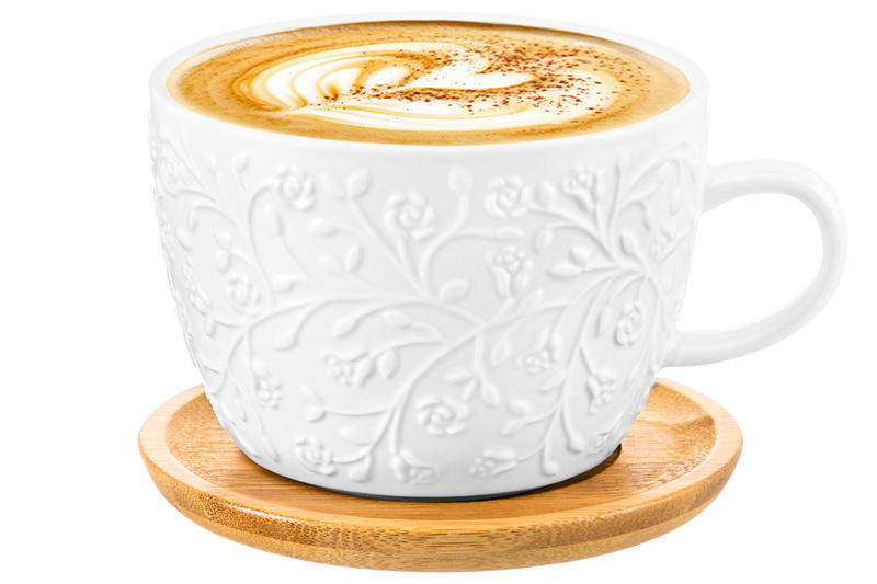 Чашка для капучино и кофе латте из серии «Веточки-цветочки» от Elan Gallery предназначена для эстетичной сервировки вашего стола. Размер ёмкости – 14,5х11,5х8 см, объём – 500 мл, размер подставки – 12,8х12,8х1 см. Выполнена из высококачественного белого фарфора. Он не впитывает цвет напитков и легко отмывается, благодаря чему надолго сохранит свою белизну. Поверхность изделия украшают рельефные узоры в виде лиственных веточек с аккуратными цветочными бутончиками. Подставка выполнена из натурального бамбука. Кофейная кружка поможет вам провести множество приятных завтраков с капучино и латте, а также уютные чайные вечера с конфетами, вафлями, другими десертами и сладостями. Подойдёт ценителям чая и кофе, которые любят пить из красивой и необычной посуды. Согрейтесь зимой любимым горячим напитком: какао с маршмэллоу, ягодным чаем или горячим шоколадом. Летом освежитесь домашним лимонадом или морсом. Декоративное изделие позволит организовать запоминающееся чаепитие. Деревянная подставка не только послужит стильным акцентом, но и защитит поверхность от воздействия высоких температур. Не рекомендуется применять абразивные моющие средства. Без бамбуковой подставки кружка подходит для использования в микроволновой печи и посудомоечной машине. Бамбук нельзя замачивать! Поставляется в дизайнерской картонной коробке – благодаря ей вам не потребуется дополнительная подарочная упаковка. Фарфоровая сервировочная посуда будет оригинальным подарком для хозяйки, ценящей не только практичность, но и привлекательность. Серия «Веточки-цветочки» от бренда Элан Галерея станет украшением любого кухонного инвентаря и позволит собрать красивый сервиз в едином стиле!