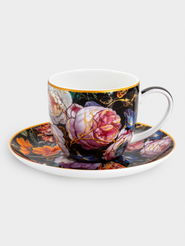 Пара чайная, 1 перс, 2 пр, 250 мл, фарфор F, черная, Розы, Baroque flowers. Материал: фарфор Fine Bone China. Мыть мягкими моющими средствами. Можно использовать в СВЧ и мыть в посудомоечной машине. 1424