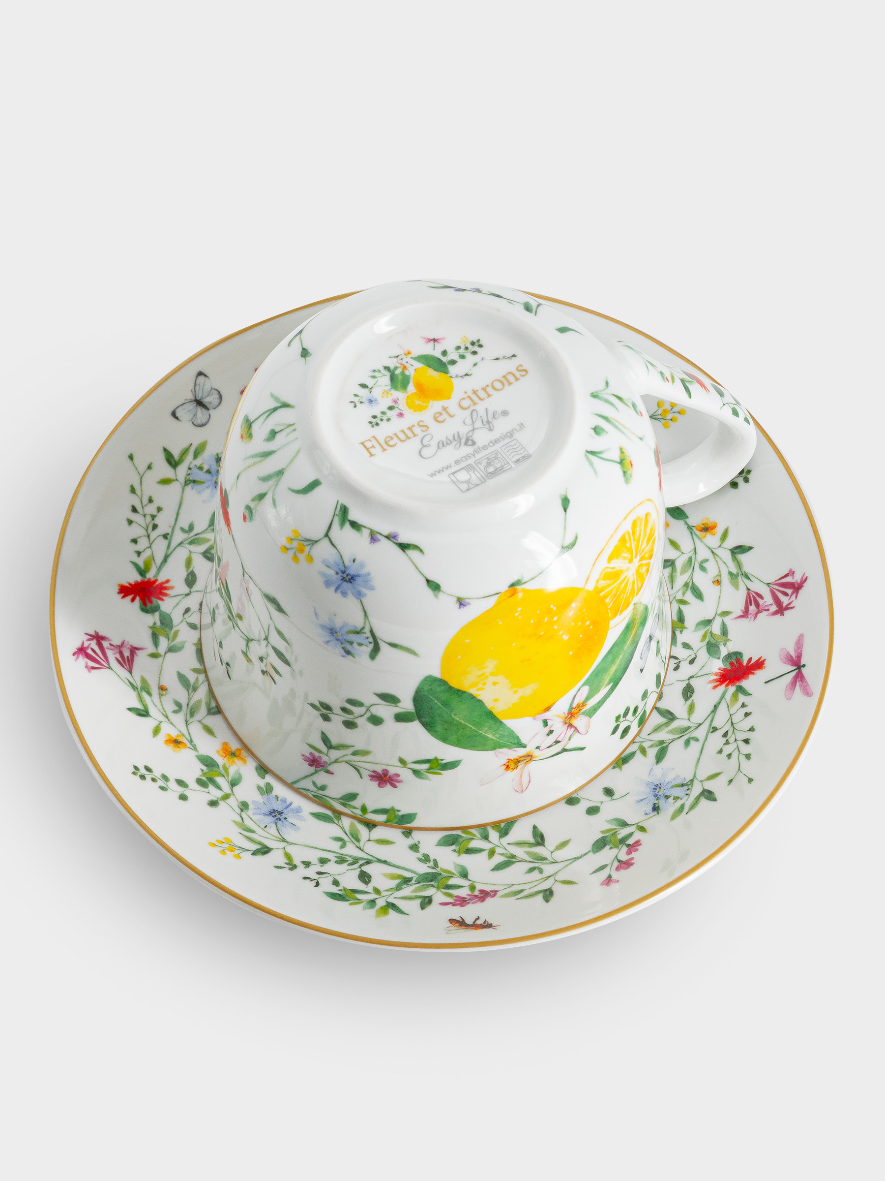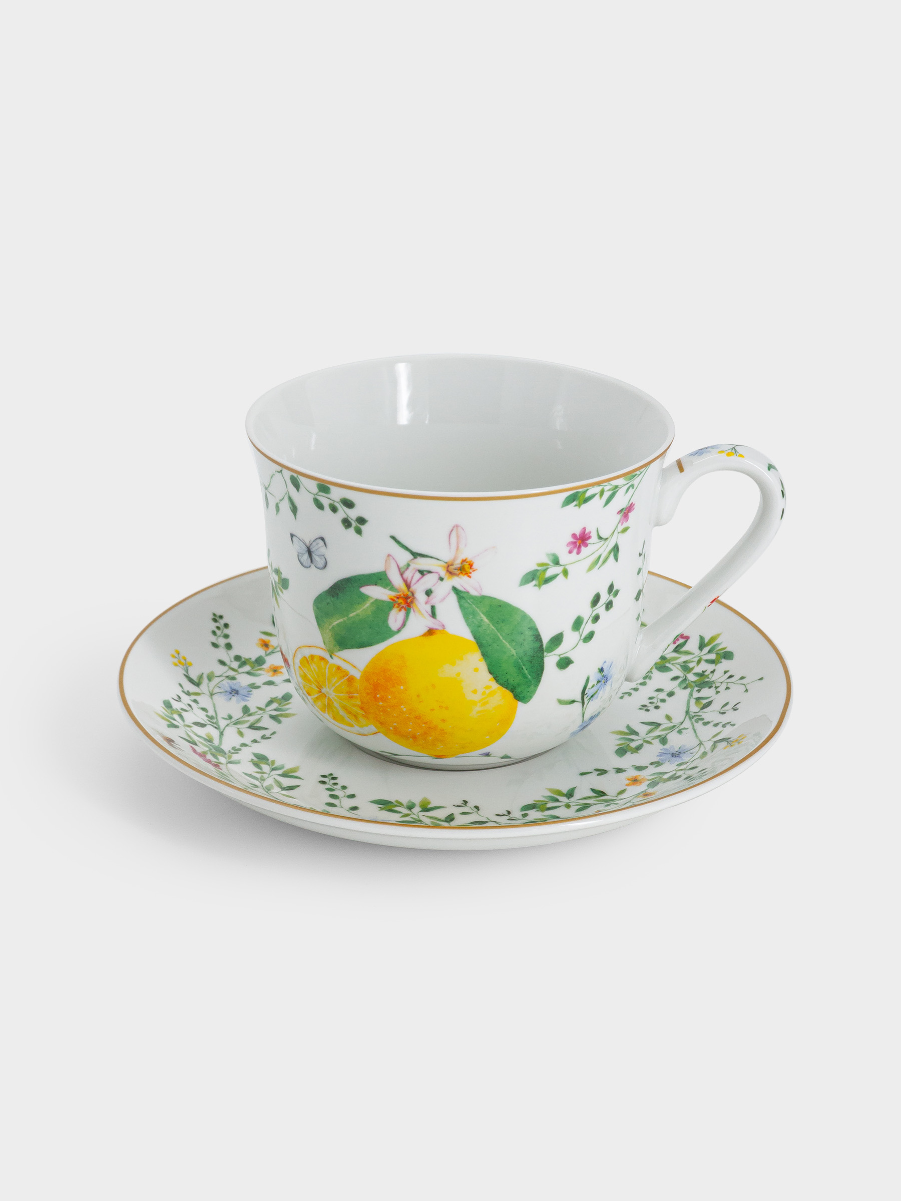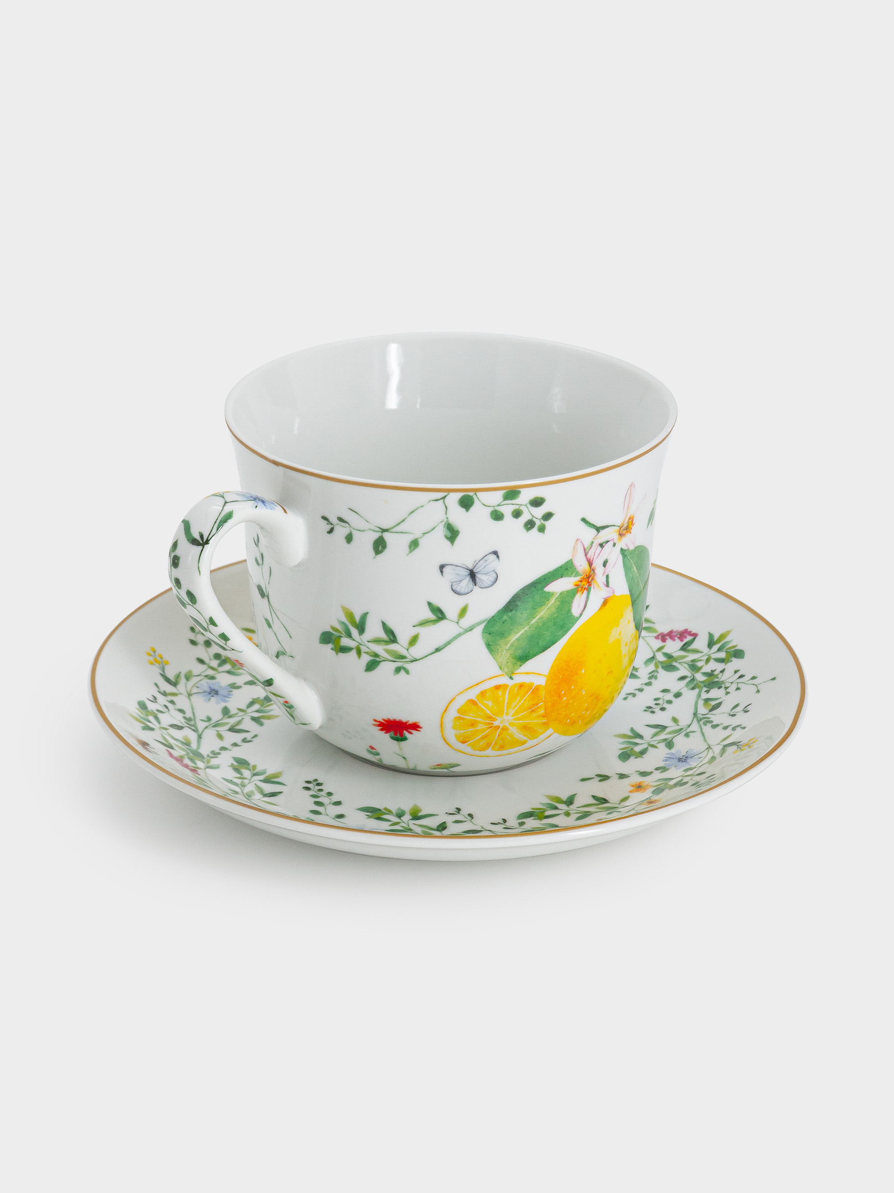 Чашка с блюдцем, 370 мл, Цветы и лимоны