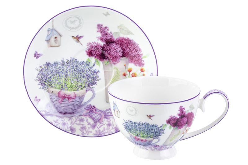Чайн. наб. 12 пр. 300 мл "Лаванда" на ножке, NEW BONE CHINA
