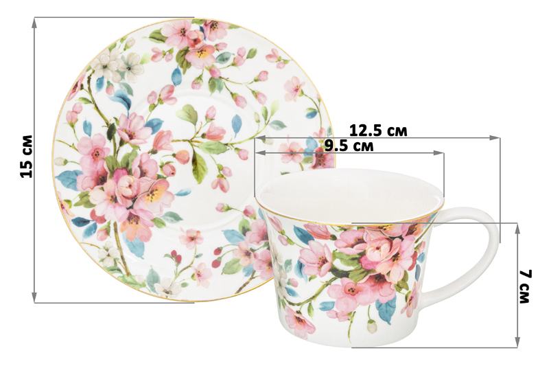 Чайн. пара 2 пр. 270 мл 12,5*9,5*7 см "Яблоневый цвет на белом" NEW BONE CHINA