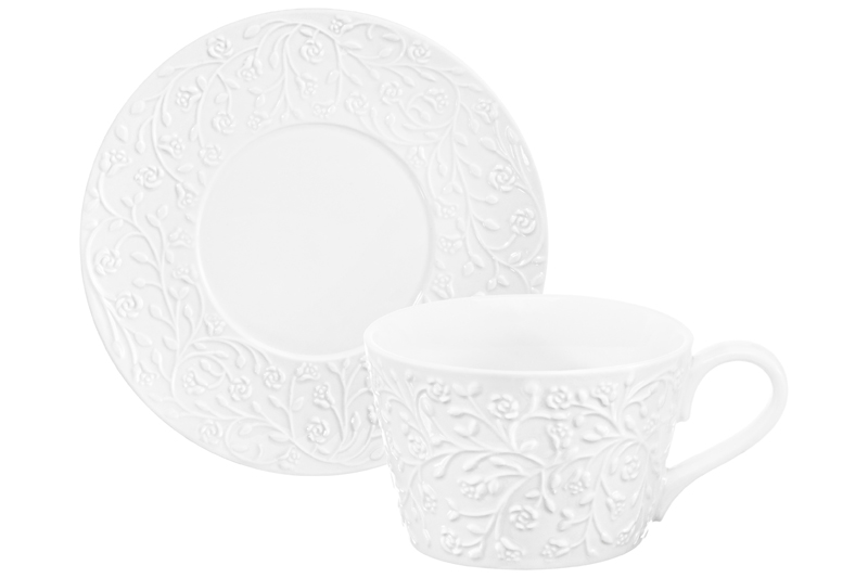 Чайная пара Elan Gallery "Веточки-цветочки" выполнена из белого фарфора в классическом дизайне. Состоит из чашки объёмом 360 мл и блюдца размером 17,5х17,5х1,5 см. Коллекция украшена рельефным узором в виде изящных веточек с маленькими цветочками. Чайная пара подходит для любителей чая и кофе. Вы сможете насладиться любимыми напитками из кружки с изящным рельефным узором и удивить своих гостей. Используйте блюдце как подставку под чашку. Положите на тарелочку кусочек торта, домашнего пирога или пирожное. Сервировочная тарелка подойдёт не только для десерта, но и закусок: сырной нарезки, сырокопчёной колбасы или свежих овощей и зелени. Изделия из белого фарфора идеально впишутся в любой интерьер вашей кухни. Разместите на блюде кусочки шашлыка или бутерброды, чтобы перекусить за чашечкой кофе. Не рекомендуется применять абразивные моющие средства. Можно использовать в микроволновой печи и мыть в посудомоечной машине. Поставляется в картонной коробке. Фарфоровая посуда – хороший вариант подарка любой женщине. Благодаря красочной коробочке не понадобится дополнительная подарочная упаковка. Особенно понравится любителям посуды в скандинавском стиле. Серия "Веточки-цветочки" позволит собрать чайный или кофейный сервиз в едином стиле. В коллекции бренда Elan Gallery представлено много товаров для дома на любой вкус!