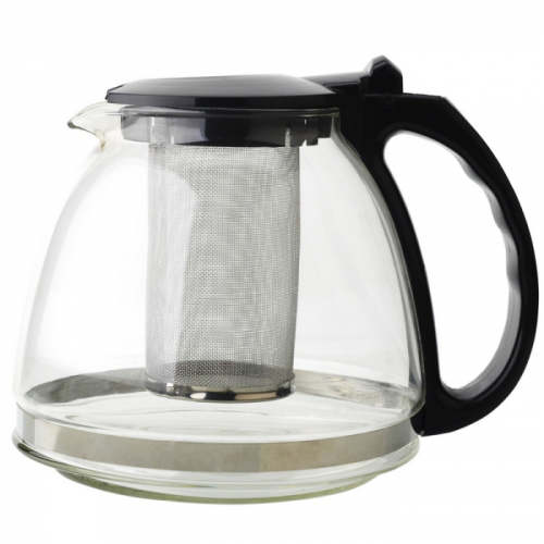 1,0л. Ручка и крышка пластиковая цветная. Ситечко из нерж.стали. Автоматическое открывание крышки. Подходит для чистки в посудомоечной машине. Состав: жаропрочное стекло.