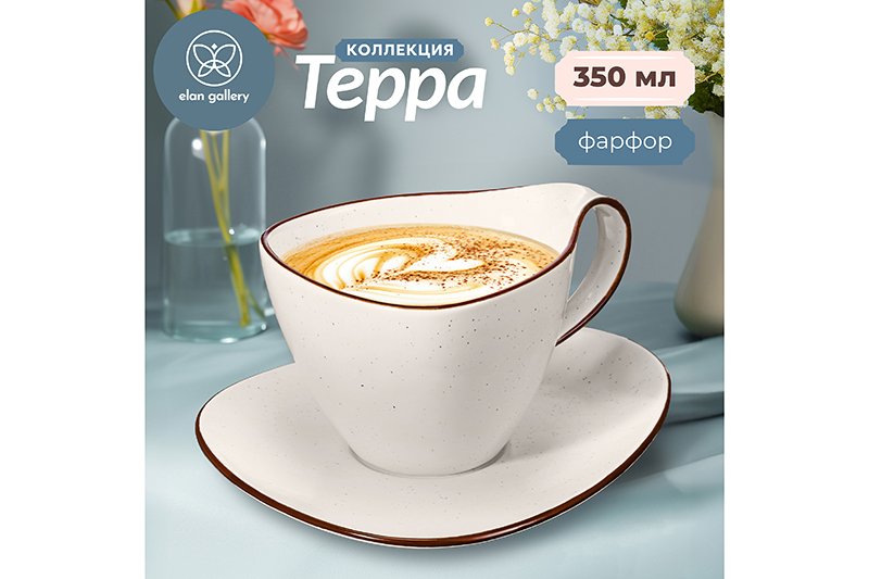 Чайная пара Elan Gallery "Терра" выполнена фарфора. В набор входят: чашка размером 14,5х10х8 см и объёмом 350 мл, блюдце 17х15х2 см. Серия фарфоровой посуды «Терра» – это погружение в атмосферу прибрежной лёгкости, тёплых песочных пляжей и природной гармонии. Белую поверхность украшает россыпь чёрных крапинок, а коричневый кант придаёт изделиям глубину. Блюдечко имеет оригинальную фигурную форму. Кружка подходит ценителям чая и кофе, которые любят пить из красивой посуды. Чайный инвентарь украсит ваш стол своим стильным дизайном как на праздник, так и в будни. Это отличный вариант для того, чтобы согреться горячим чаем зимой и освежиться прохладным лимонадом летом. Наслаждайтесь любыми кофейными напитками: эспрессо, капучино или латте. В отличие от керамики фарфор не впитывает цвет и запах напитков, легко отмывается и сохраняет свой привлекательный вид долгие годы. Используйте фарфоровую тарелку как подставку для кружечки, чтобы порадовать гостей изящной сервировкой. Положите на неё кусочек торта, домашнего пирога или пирожное. Тарелочка подойдёт не только для десерта, но и закусок: сырной нарезки, сырокопчёной колбасы или свежих овощей и зелени. Не рекомендуется применять абразивные моющие средства. Набор можно использовать в микроволновой печи и посудомоечной машине. Поставляется в красивой картонной коробке. Станет приятным подарком вашим близким на любой праздник. Благодаря стильной коробочке не понадобится подарочная упаковка. Чашка с десертной тарелочкой станут украшением вашей кухни или приятным сюрпризом для близких. В коллекции бренда Элан Галерея представлены товары для дома на любой вкус, в том числе красивая посуда для эстетичного чаепития. Коллекция «Терра» наполнит ваш дом свежестью и естественным уютом, создавая пространство для незабываемых мгновений.