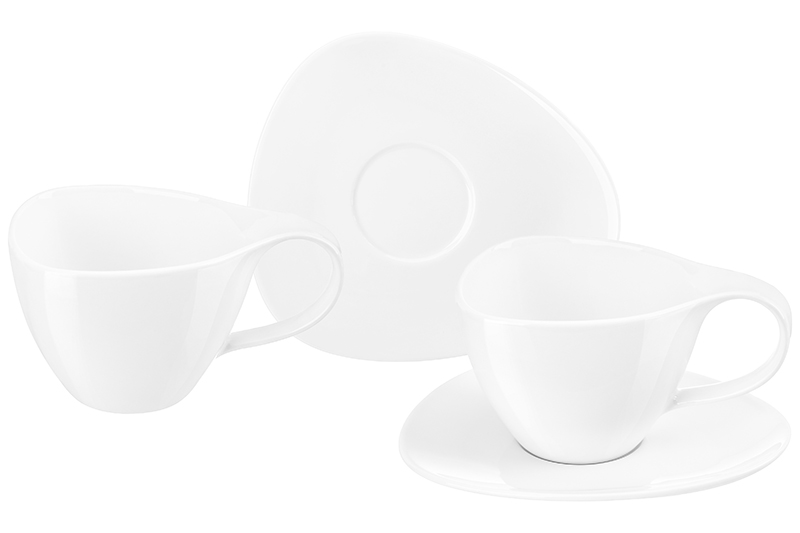 Набор 2 чайных пар из серии «Колоранс» от Elan Gallery предназначен для эстетичной сервировки вашего стола. Размер каждой ёмкости – 14,3х10,3х7,8 см, объём – 300 мл. Размер каждого блюдца – 17,2х15,4х2,2 см. Выполнены из высококачественного белого фарфора. Он не впитывает цвет напитков и продуктов и легко отмывается, благодаря чему надолго сохранит свою белизну. Серия «Колоранс» – это фактурная посуда в современном исполнении. Изделия имеют необычную геометрическую форму, а благодаря «впалой» поверхности ручки кофейную кружку приятно держать и удобно переносить. Набор поможет провести множество приятных завтраков с капучино и латте, а также уютные чайные вечера с конфетами, вафлями, другими десертами и сладостями. Подойдёт ценителям чая и кофе, которые любят пить из красивой и необычной посуды. Согрейтесь зимой любимым горячим напитком: какао с маршмэллоу, ягодным чаем, горячим шоколадом. Летом освежитесь домашним лимонадом или морсом. Используйте сервировочные блюдца как подставки для чашек, чтобы порадовать гостей изящной сервировкой. Положите на десертные тарелки пирожные, кусочки торта или домашнего пирога. Подойдут не только для десертов, но и для закусок: сырной нарезки, сырокопчёной колбасы или свежих овощей и зелени. Декоративные изделия добавят эстетики любому чаепитию. Не рекомендуется применять абразивные моющие средства. Подходят для использования в микроволновой печи и посудомоечной машине. Поставляются в дизайнерской картонной коробке – благодаря ей вам не потребуется дополнительная подарочная упаковка. Фарфоровая сервировочная посуда послужит оригинальным подарком для хозяйки, ценящей не только практичность, но и привлекательность. Серия «Колоранс» от бренда Элан Галерея станет украшением любого кухонного инвентаря и позволит собрать сервиз в едином стиле!