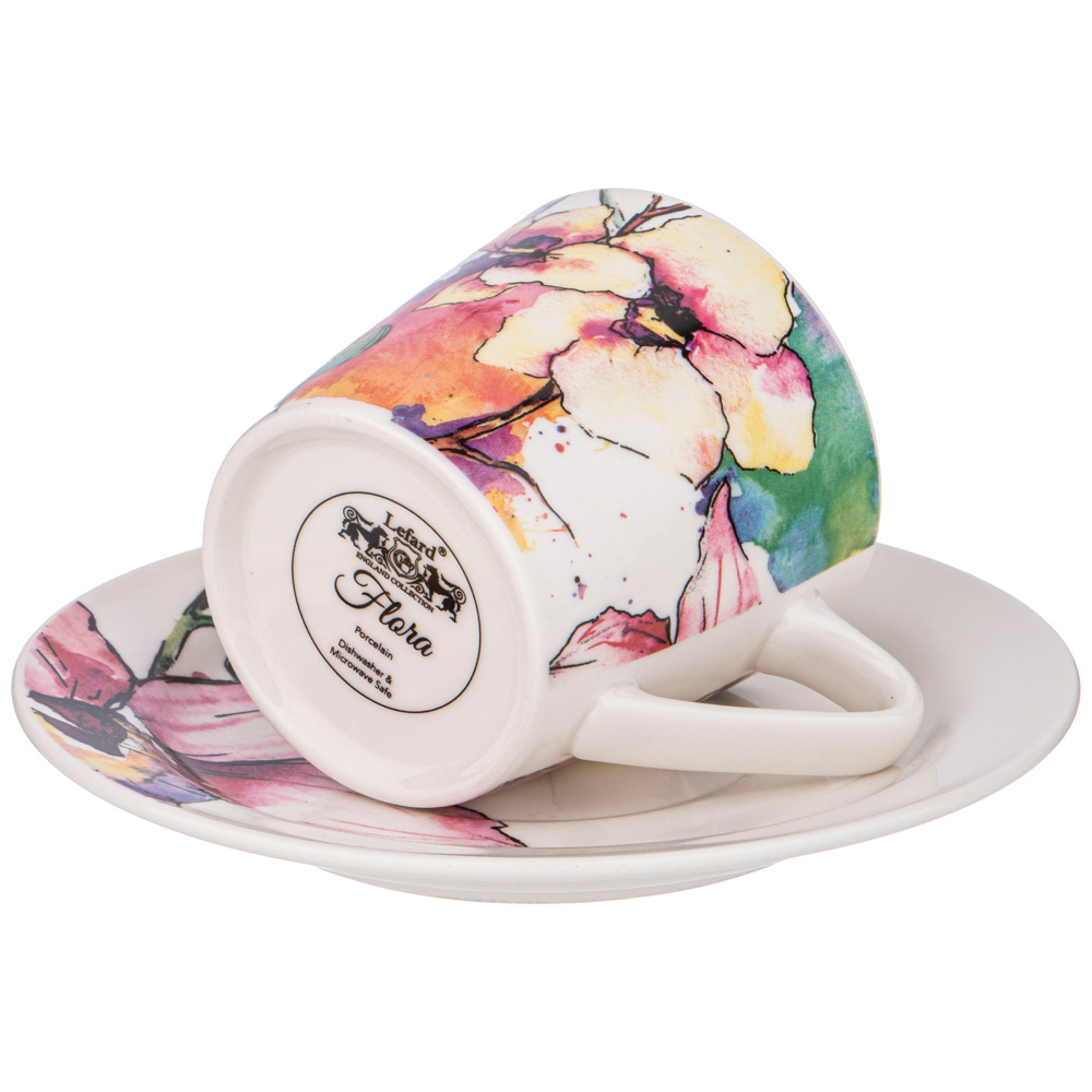 Чайная пара выполнена из фарфора. Удобные и функциональные формы. Современная деколь пастельных оттенков с актуальным акварельным принтом. Стильная упаковка. Посуда прошла сертификацию, безопасна для контакта с пищевыми продуктами. Отличный подарок. Разрешено использование в микроволновой печи, можно мыть в посудомоечной машине мягкими моющими средствами.