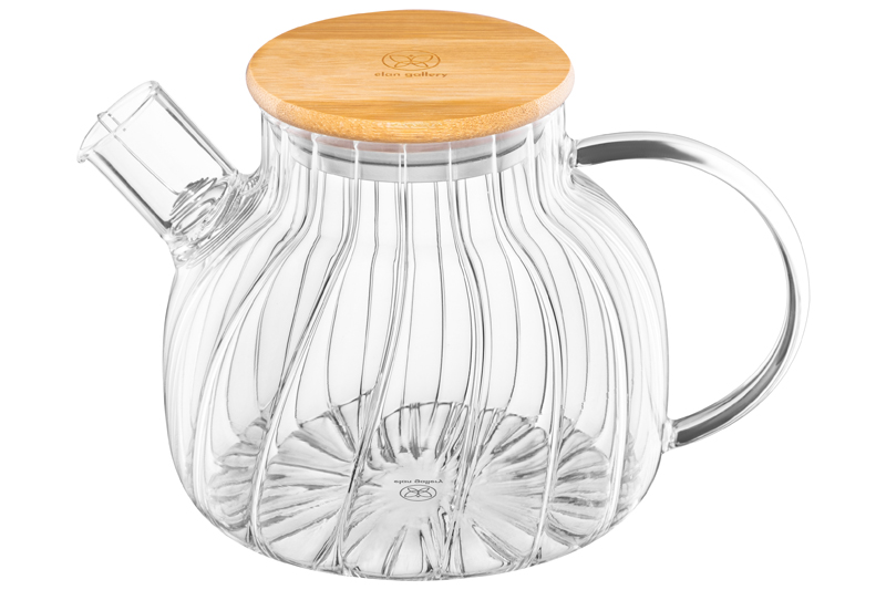Чайник 1 л 20*14*13 см "Crystal glass" с ситом+бамб.крышк.с метал. дном/с силик.уплотнит, стекло