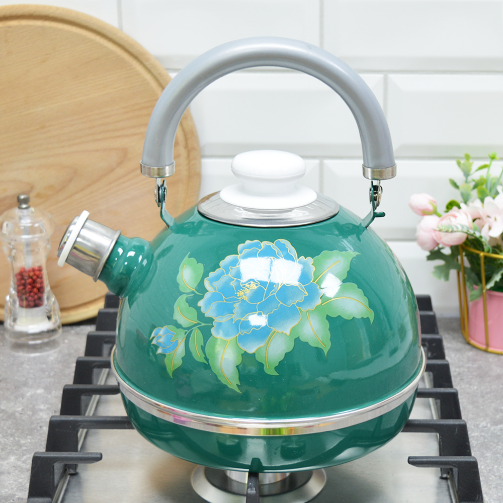 Чайник 3,5л со свистком, подвижная ручка, бирюзовый/голубая орхидеяЧайник изготовлен из эмалированной стали, которая не впитывает запахи, не окисляется.Носик чайника оснащен насадкой-свистком, который позволяет контролировать процесс кипячения или подогрева воды.Объем - 3,5 л.Заключаем договора по 44 ФЗ, 223 ФЗ