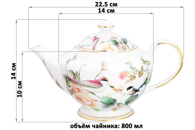 Чайник 800 мл 22,5*14*14 см "Певчие птички" NEW BONE CHINA