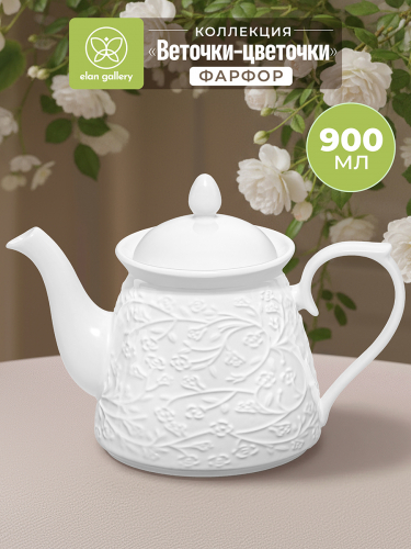 Чайник 900 мл 23*13*16,5 см "Веточки-цветочки", фарфор