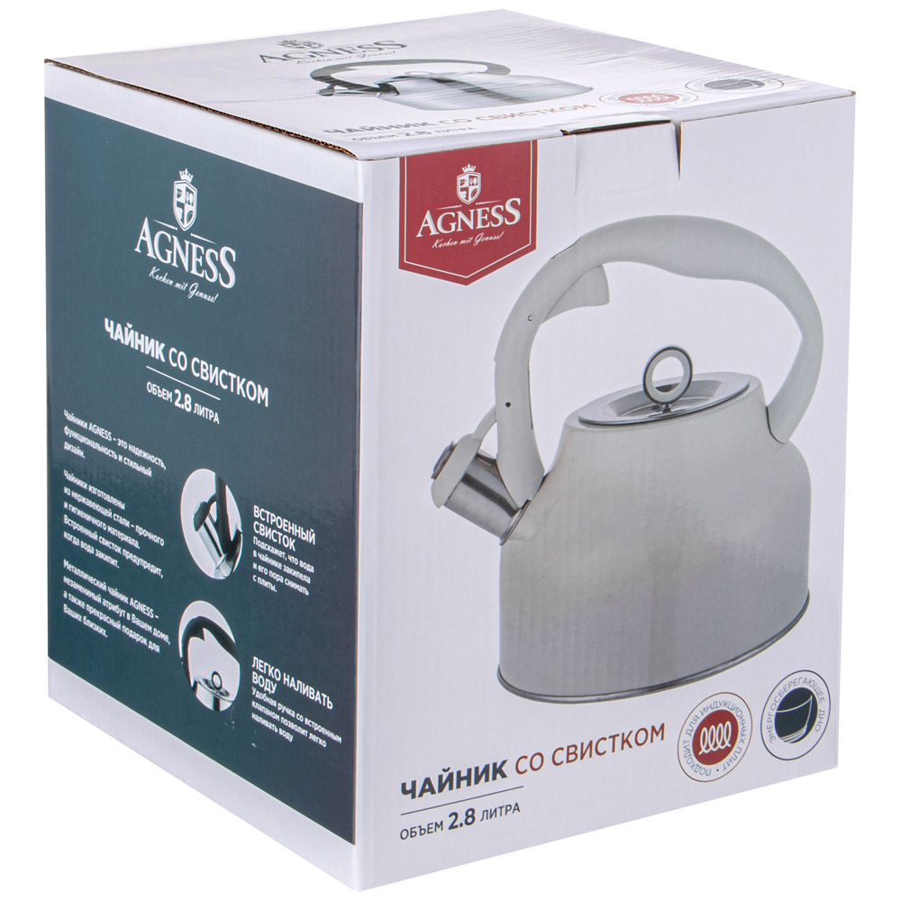 Металлический чайник AGNESS - незаменимый атрибут в Вашем доме, а также прекрасный подарок для Ваших близких.