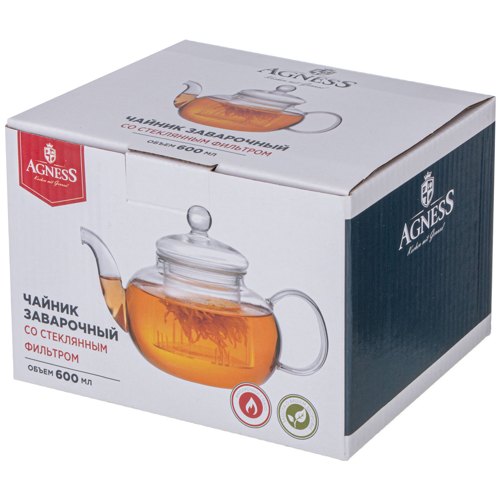 ЧАЙНИК ЗАВАРОЧНЫЙ AGNESS СО СТЕКЛЯННЫМ ФИЛЬТРОМ 600 МЛ (КОР=24ШТ.)