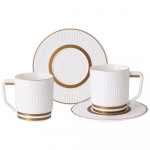 TM Lefard коллекция «Grain» - это модная сервировка стола и стильный кухонный интерьер в модных серых и мятных цветах с золотой окантовкой. Блюда и формы различных размеров, менажницы на бамбуковых подставках, банки, тарелки и салатники различного назначения, чайники, чайные пары и кружки выполнены из упрочненного фарфора. Четкие линии, сверкающее глянцевое покрытие. Вы и Ваш стол неотразим!