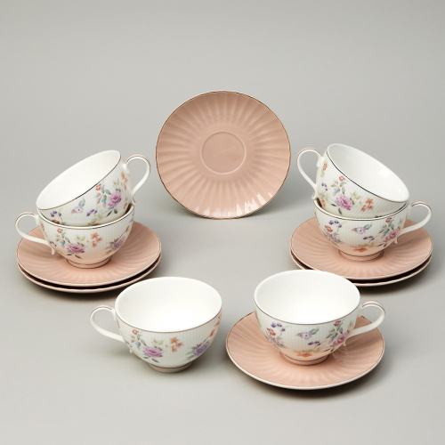 ТМ LEFARD коллекция "Времена года" выполнена из тонкостенного фарфора. Стильная форма, вместительный объем, модное сочетание пастельных тонов и цветочной деколи, отделка золотом - все это делает коллекцию неотразимой и очень привлекательной. Форма и цвет посуды способны оказать магическое действие на всех, кто находится за столом. «Времена года» могут согреть душу, создать тепло и уют в доме. Это прекрасный подарок. Продукция прошла сертификацию и безопасна для контакта с пищевыми продуктами. Можно ставить в микроволновую печь, не рекомендуется мыть в посудомоечной машине. Комплектность: 6 чашек 250 мл., 6 блюдец 15*7,5 см.