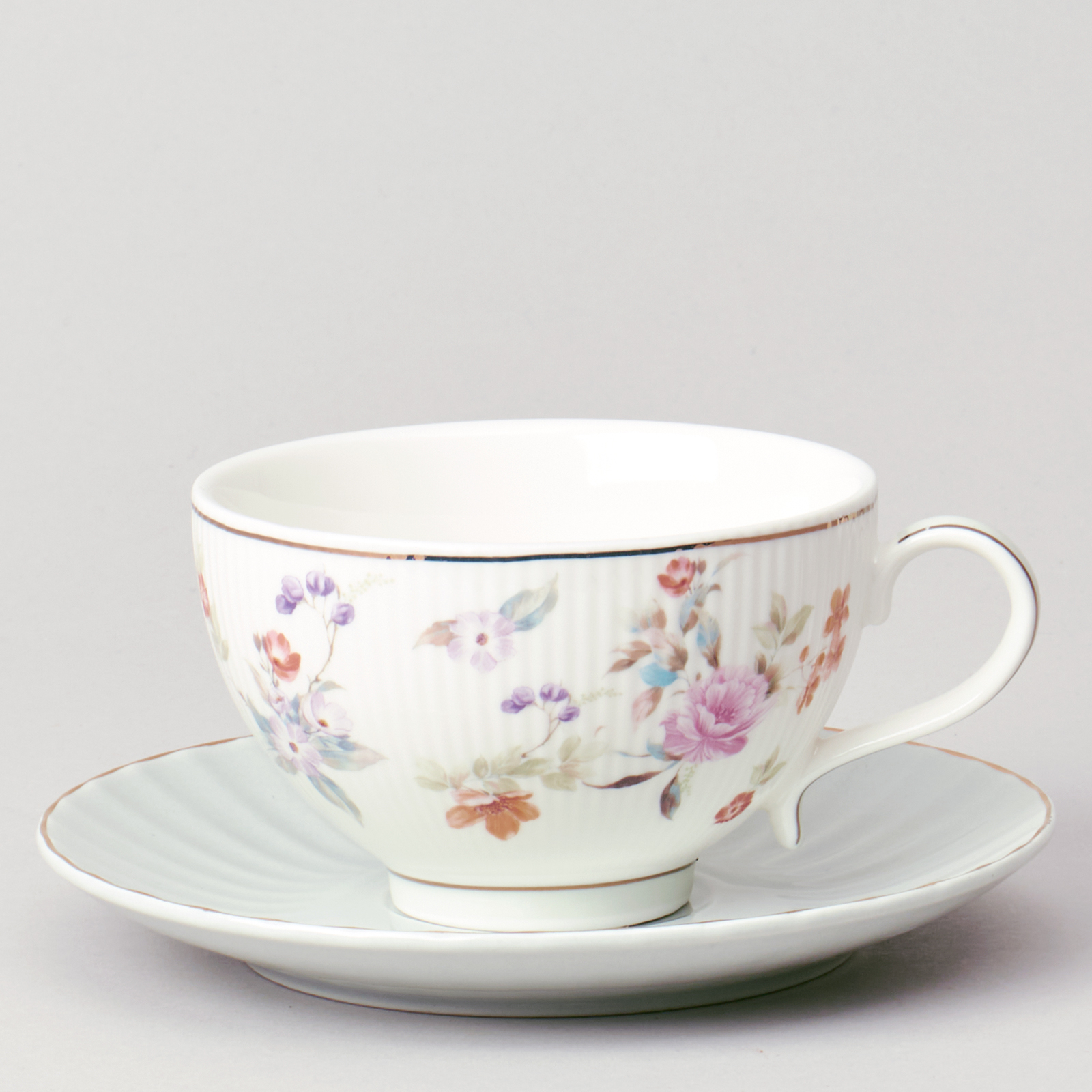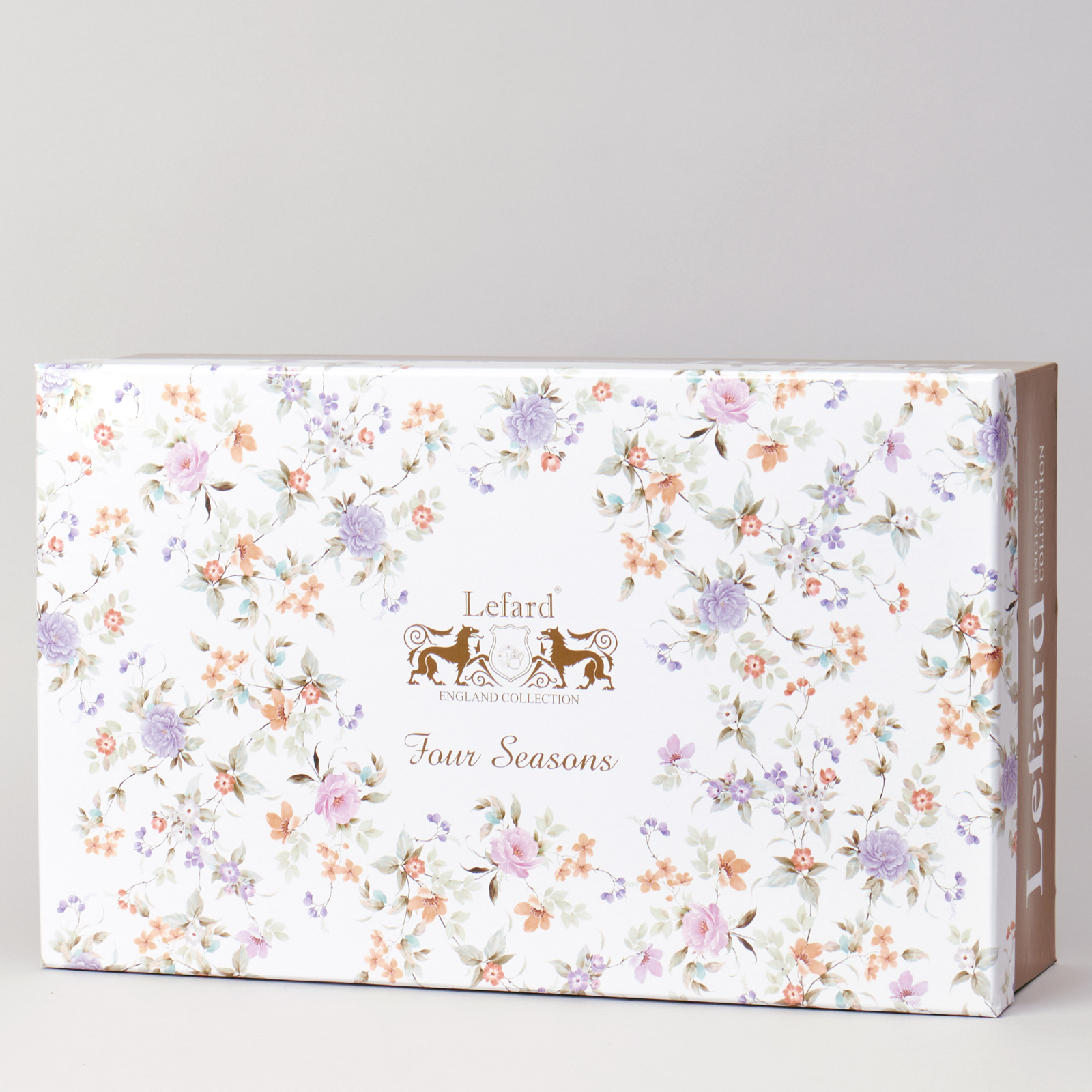 ТМ LEFARD коллекция "Времена года" выполнена из тонкостенного фарфора. Стильная форма, вместительный объем, модное сочетание пастельных тонов и цветочной деколи, отделка золотом - все это делает коллекцию неотразимой и очень привлекательной. Форма и цвет посуды способны оказать магическое действие на всех, кто находится за столом. «Времена года» могут согреть душу, создать тепло и уют в доме. Это прекрасный подарок. Продукция прошла сертификацию и безопасна для контакта с пищевыми продуктами. Можно ставить в микроволновую печь, не рекомендуется мыть в посудомоечной машине. Комплектность: 6 чашек 250 мл., 6 блюдец 15*7 см.