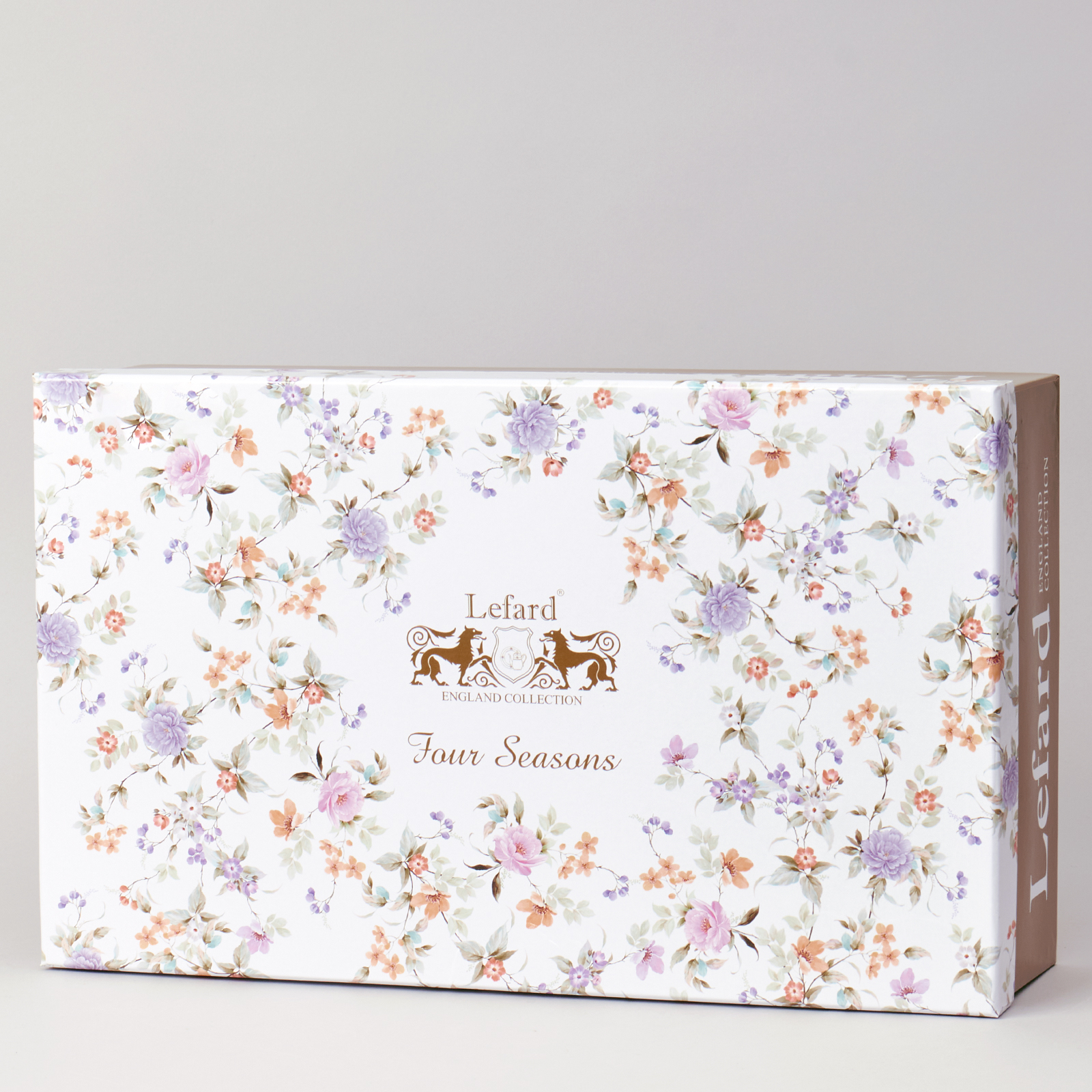 ТМ LEFARD коллекция "Времена года" выполнена из тонкостенного фарфора. Стильная форма, вместительный объем, модное сочетание пастельных тонов и цветочной деколи, отделка золотом - все это делает коллекцию неотразимой и очень привлекательной. Форма и цвет посуды способны оказать магическое действие на всех, кто находится за столом. «Времена года» могут согреть душу, создать тепло и уют в доме. Это прекрасный подарок. Продукция прошла сертификацию и безопасна для контакта с пищевыми продуктами. Можно ставить в микроволновую печь, не рекомендуется мыть в посудомоечной машине. Комплектность: 6 чашек 250 мл., 6 блюдец 15*7 см.