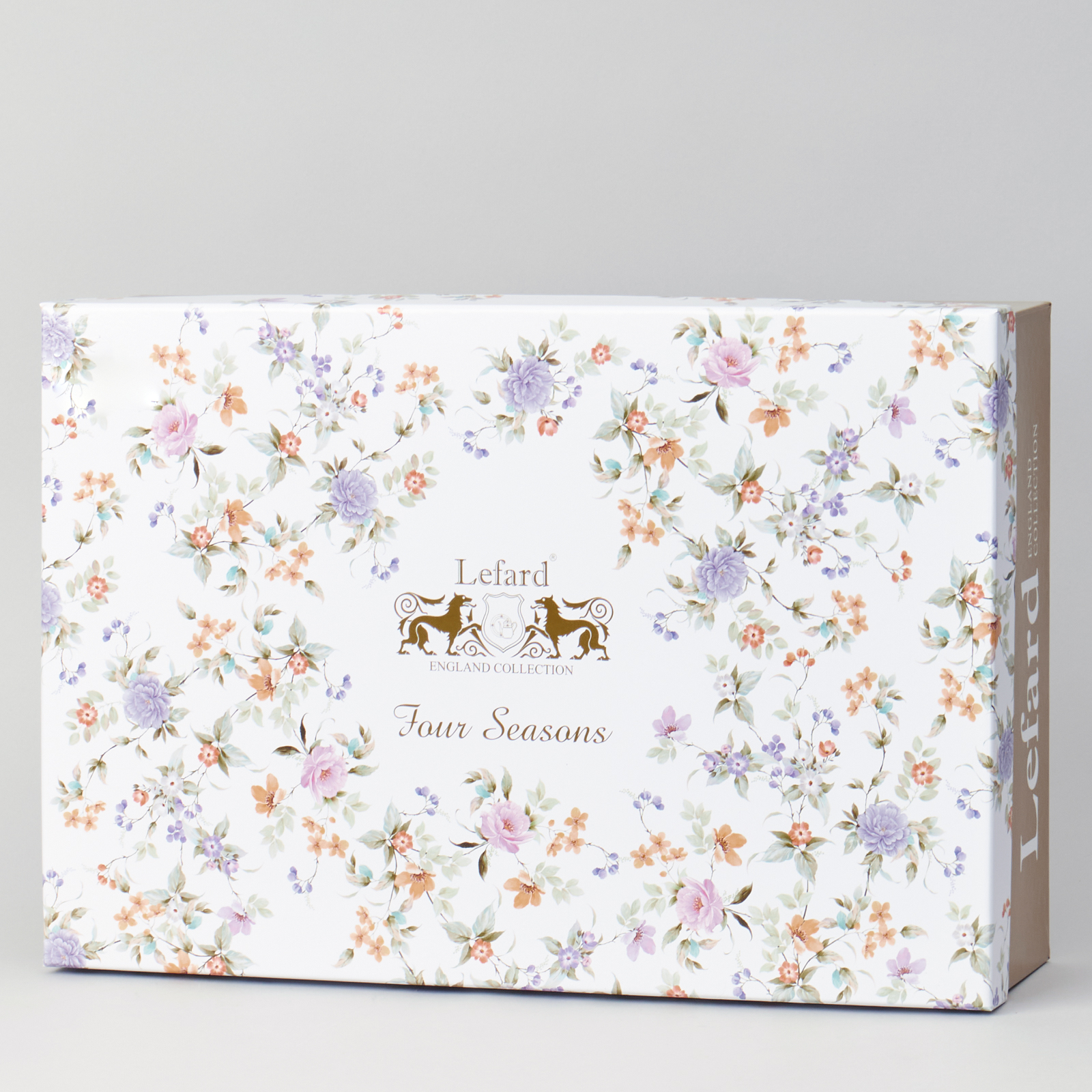 ТМ LEFARD коллекция "Времена года" выполнена из тонкостенного фарфора. Стильная форма, вместительный объем, модное сочетание пастельных тонов и цветочной деколи, отделка золотом - все это делает коллекцию неотразимой и очень привлекательной. Форма и цвет посуды способны оказать магическое действие на всех, кто находится за столом. «Времена года» могут согреть душу, создать тепло и уют в доме. Это прекрасный подарок. Продукция прошла сертификацию и безопасна для контакта с пищевыми продуктами. Можно ставить в микроволновую печь, не рекомендуется мыть в посудомоечной машине. Комплектность: 6 чашек 250 мл., 6 блюдец 15*7,5 см.