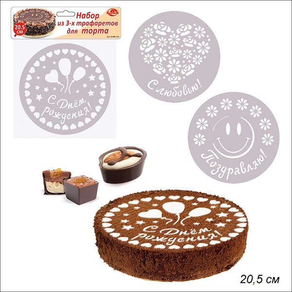Декоратор для торта 3 штуки 20,5 см / DH80-241 /уп 12/144/