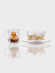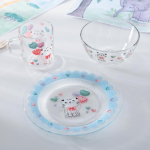 Прозрачные стеклянные предметы с интересным ярки дизайном добавят акцентов в каждый приём пищи и заинтересуют ребёнка.