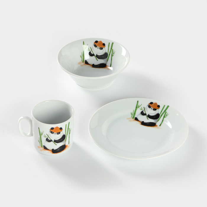 Набор посуды детский Добрушский завод «Панда», 3 предмета: кружка, миска, тарелка, фарфор, белый