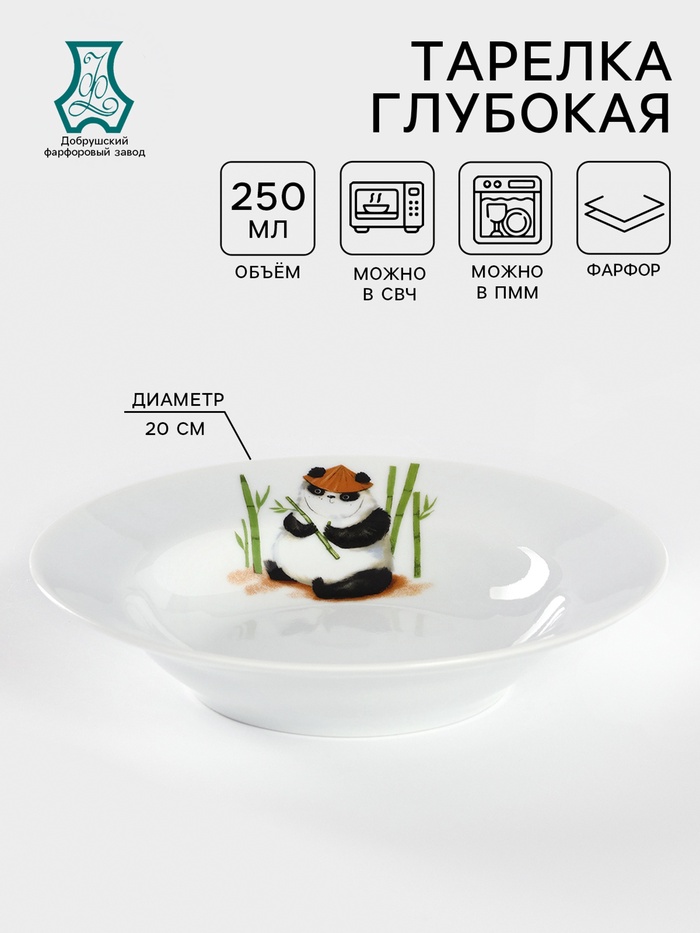 Тарелка глубокая Добрушский завод «Панда», 250 мл, d=20 см, фарфор, белая