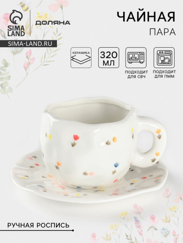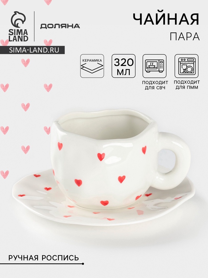 Переносите свою любовь к чаепитию на новый уровень с этой нежной чайной парой, которая своим дизайном и изысканностью вдохновляет на уютные вечера и романтические моменты. Каждая деталь, от чашки до блюдца, украшена ручной росписью с сердечками, что делает этот набор незаменимым для любителей красивой посуды.