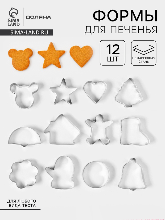 Приготовьтесь к волшебству! Наш набор из 12 формочек для вырезания печенья превратит обычное выпекание в увлекательное приключение, а ваши новогодние праздники станут ещё ярче и вкуснее.