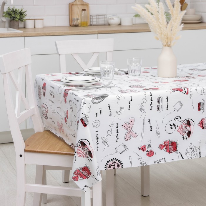 Один из самых простых и действенных способов – покрыть на стол красивой скатертью или клеёнкой. Практичное изделие на основе ПВХ разнообразит интерьер благодаря красочному узору, который, при условии правильной эксплуатации, не сотрётся с течением времени.