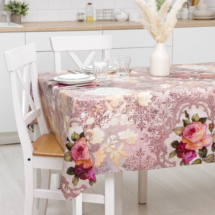 Один из самых простых и действенных способов – покрыть на стол красивой скатертью или клеёнкой. Практичное изделие на основе ПВХ разнообразит интерьер благодаря красочному узору, который, при условии правильной эксплуатации, не сотрётся с течением времени.