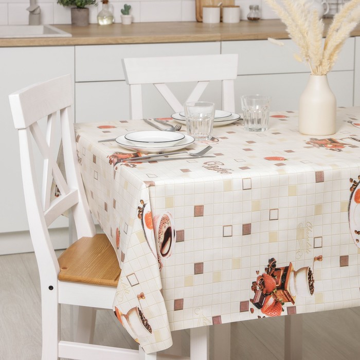 Один из самых простых и действенных способов – покрыть на стол красивой скатертью или клеёнкой. Практичное изделие на основе ПВХ разнообразит интерьер благодаря красочному узору, который, при условии правильной эксплуатации, не сотрётся с течением времени.