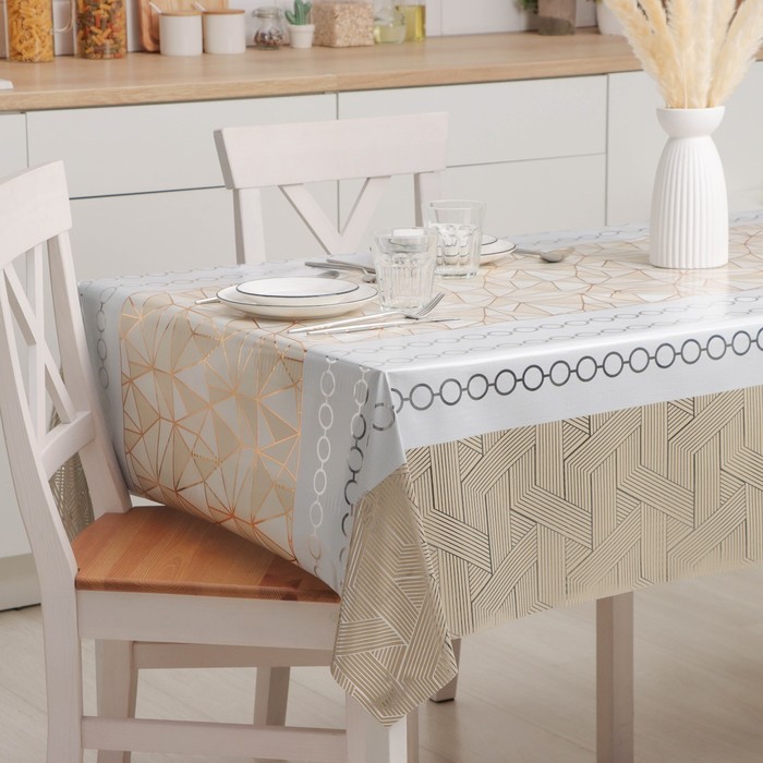 Клеёнка на нетканевой основе «Золото» в 3–4 раза прочнее обычных аналогов. Такой материал не мнётся и не деформируется. ПВХ-основа делает клеёнку максимально простой в уходе. Любая грязь устраняется быстро: с помощью простой влажной тряпочки вы без особых усилий приведёте стол в порядок.