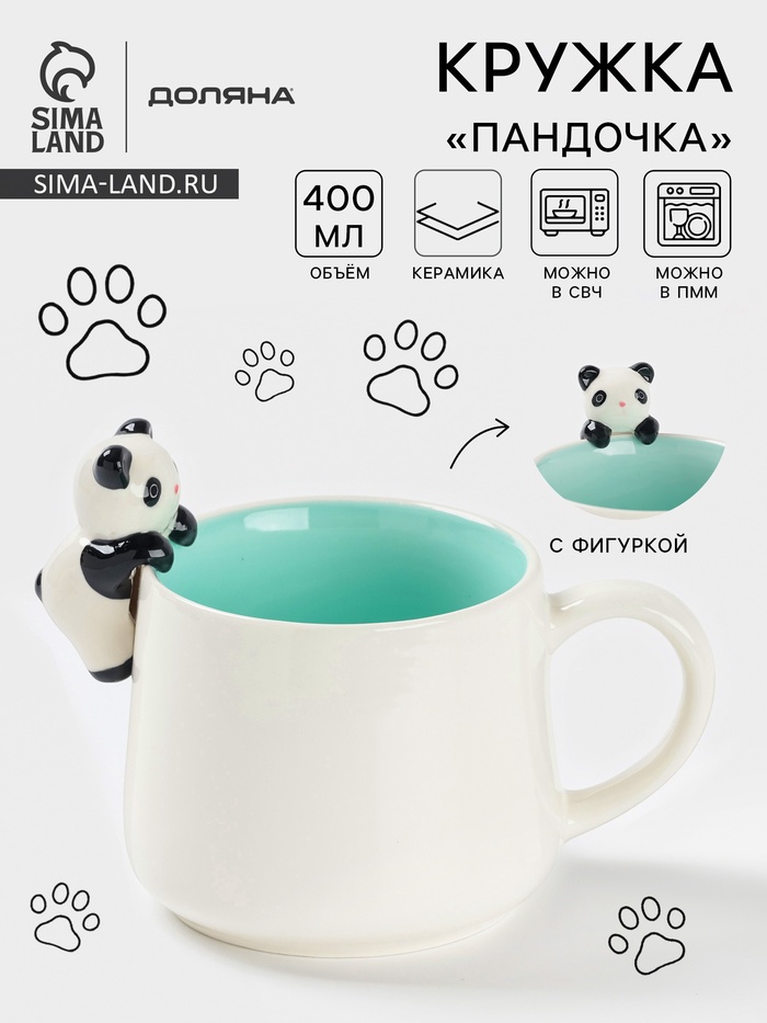 Милая керамическая кружка с фигуркой пандочки создают атмосферу уюта и дарят хорошее настроение. Подходит для детей и взрослых, можно использовать в микроволновой печи и мыть в посудомоечной машине.