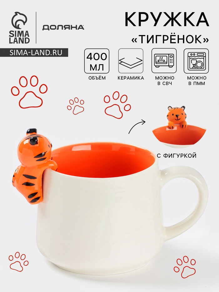 Эта милая керамическая кружка с тигренком подарит заряд энергии на весь день! Объемом 400 мл, в жизнерадостных бело-оранжевых тонах, она станет любимой как для детей, так и для взрослых. Подходит для использования в микроволновой печи и посудомоечной машине.