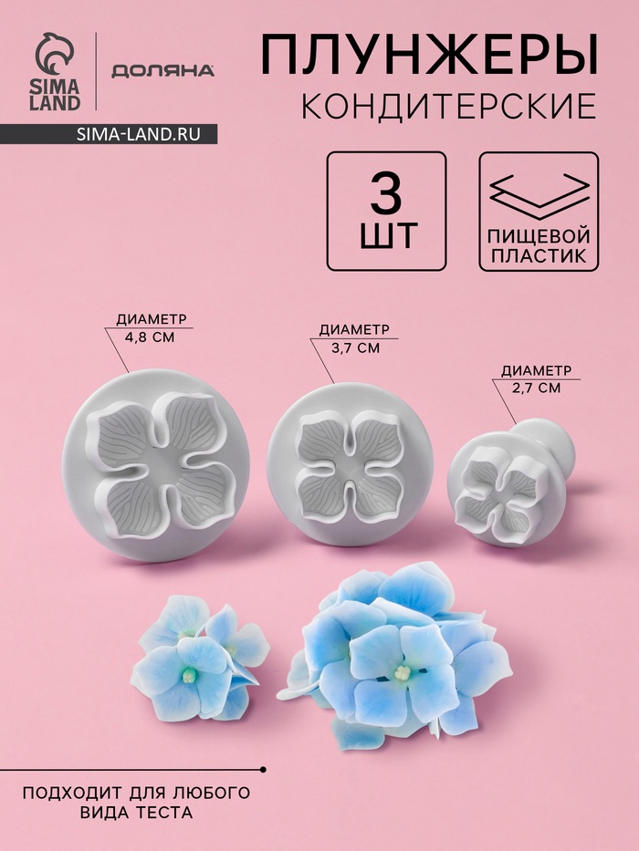 Кондитерские плунжеры «Клевер» нужны для изготовления украшений из пищевой мастики.