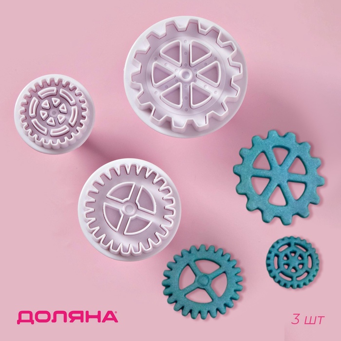 Кондитерские плунжеры «Шестерёнки» нужны для изготовления украшений из пищевой мастики.