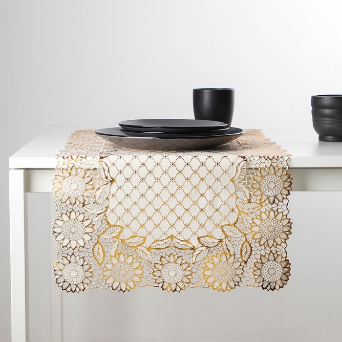 Дорожка сервировочная на стол «Букет», ажурная, 84×40 см, ПВХ, золотая