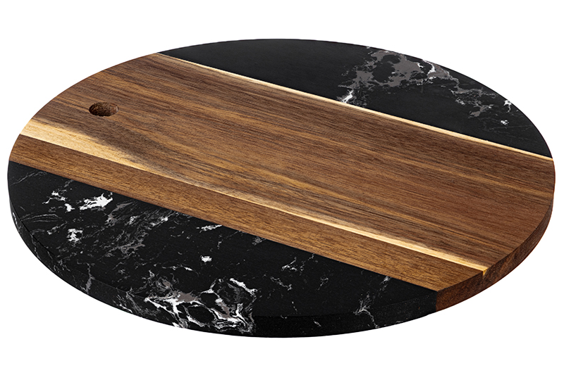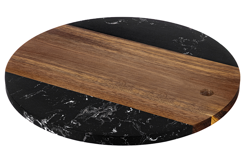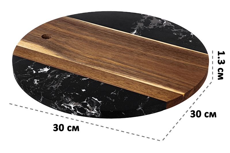 Доска для разделки и сервировки 30*30*1,3 см "Черная" круглая, мрамор/акация