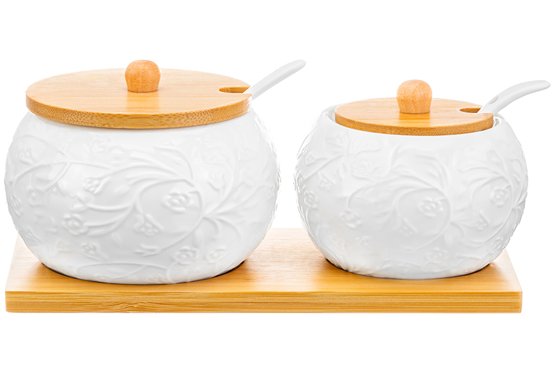 БЫЛО 1069руб! Набор - сахарница 350 мл + солонка 230 мл 20,5*11*9 см "Веточки-цветочки" + 2 ложки на дер. подст.