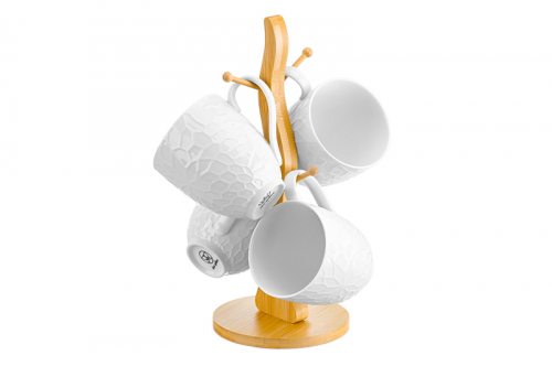 БЫЛО 1154руб! Набор 4 кружек 170 мл 10,5*8,5*21 см "Айсберг" на дерев. подставке