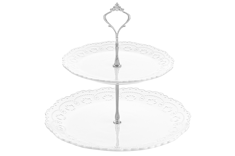 БЫЛО 1446руб!!* Блюдо-этажерка 2-х ярусная 28*28*25 см "Белый узор" с серебристым креплением