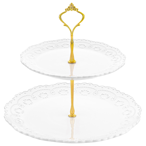 БЫЛО 1446 руб! Блюдо-этажерка 2-х ярусная 28*28*25 см "Белый узор" с золотистым креплением