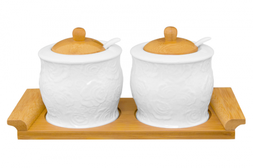 БЫЛО 1632руб! Набор 4 кружек 350 мл "Розы" на дерев. подставке