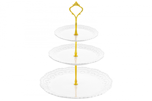 БЫЛО 1828 руб! Блюдо-этажерка 3-х ярусная 28*28*37 см "Белый узор" с серебристым креплением