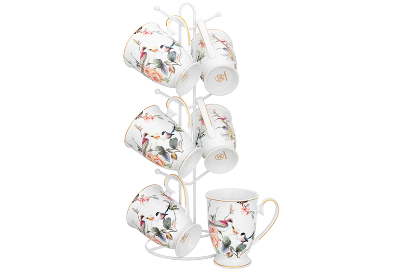 БЫЛО 3327руб! Набор 6 кружек 300 мл "Певчие птички" на ножке на мет.подст. 15*15*41,5 см