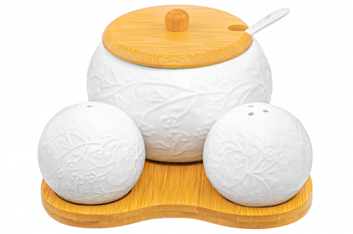 БЫЛО 434 руб! Банка д/специй 350 мл 9,5*9,5*10 см "Цветок" + дерев. крышка + ложка