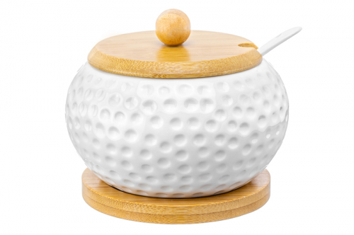 БЫЛО 583руб! Сахарница 310 мл 11*11*9,5 см "Айсберг волны" + ложка + дер. крышка на дер. подставке