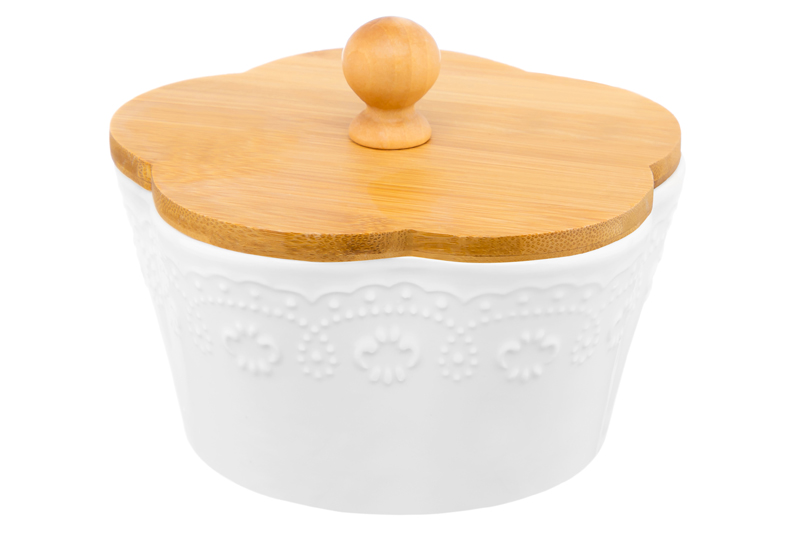 БЫЛО 683 руб!! Банка д/печенья 14,8*14,8*11,5 см 760 мл "Белый узор" с дерев. крышкой