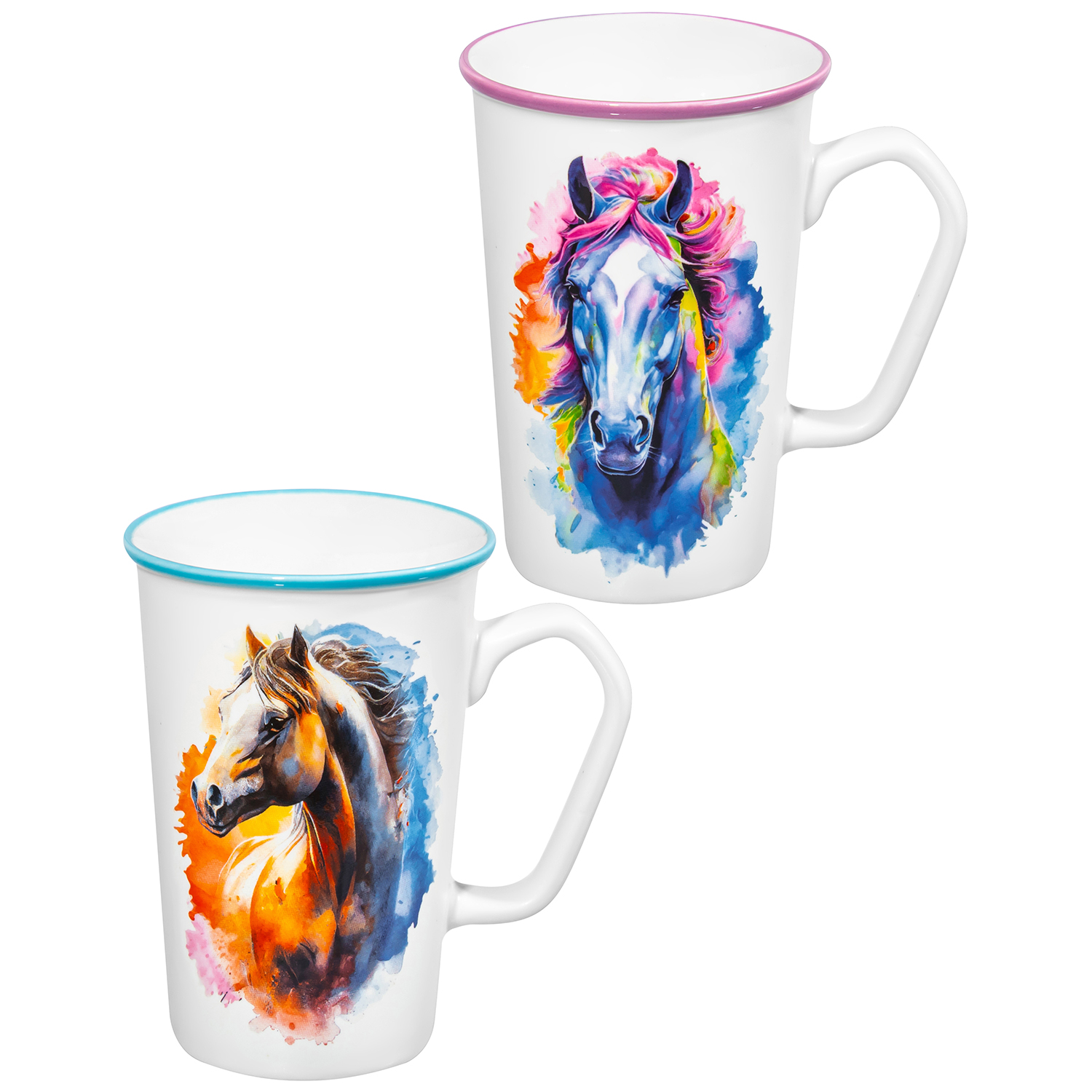 БЫЛО 807 руб! Набор кружек 2 пр. 420 мл 12,5*8,8*13 см "Лошади", фарфор